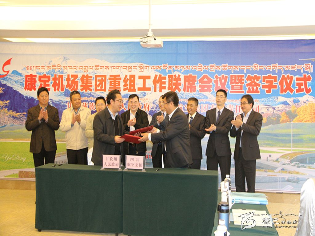 會上,胡昌升和李海鷹分別作了講話,益西達(dá)瓦和李海鷹分別代表州人民政府和川航集團簽署了四川康定機場集團公司重組事宜備忘錄。李海鷹在講話中表示,川航集團和甘孜州的發(fā)展方向一致,價值取向一致,雙方一定會在加強合作的基礎(chǔ)上實現(xiàn)共同發(fā)展;川航將盡快開通西安、重慶、昆明、杭州至甘孜州的航線,開通康定至稻城的“高高原”互飛航班;充分利用川航集團的宣傳平臺,推廣甘孜州旅游、文化等優(yōu)勢資源和產(chǎn)業(yè),積極參與甘孜州全域旅游發(fā)展,將甘孜州“飛機+X”相關(guān)產(chǎn)業(yè)納入川航集團“十三五”規(guī)劃。