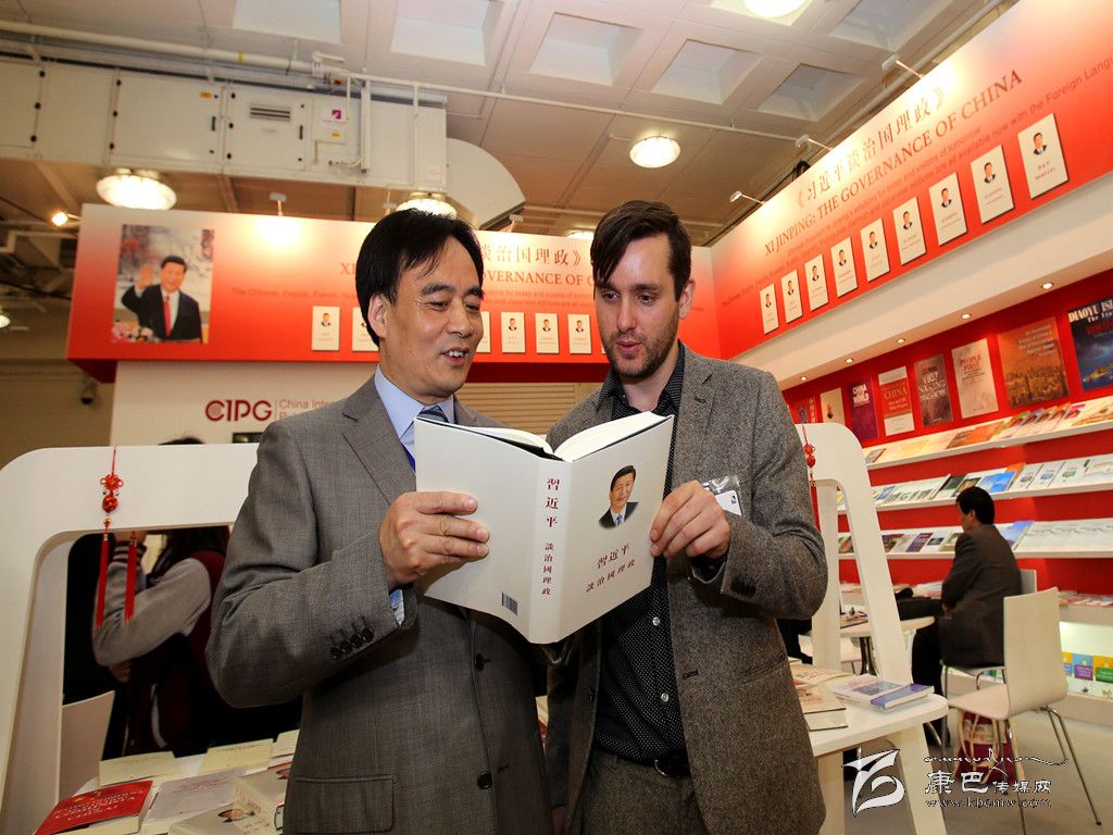 4月14日,中國國際出版集團(tuán)副總裁陸彩榮(左)在倫敦書展上向一名英國讀者介紹《習(xí)近平談治國理政》(繁體中文版)一書。第44屆倫敦書展當(dāng)天正式開幕。首次亮相倫敦書展的《習(xí)近平談治國理政》多文種版圖書受到各界的極大關(guān)注,成為本屆書展中國展團(tuán)的一大亮點(diǎn)。陸彩榮在倫敦書展上宣布,《習(xí)近平談治國理政》一書全球發(fā)行量突破400萬冊,其中海外發(fā)行40萬冊,這是改革開放以來,中國國家領(lǐng)導(dǎo)人著作海外發(fā)行的最高紀(jì)錄。新華社記者 韓巖 攝