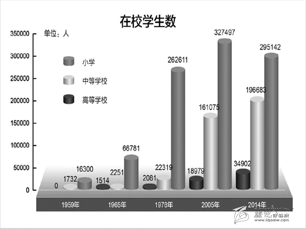 教育事業(yè)日新月異,實(shí)現(xiàn)學(xué)有所教。全區(qū)所有縣(區(qū))全面完成普及九年義務(wù)教育,一個(gè)涵蓋學(xué)前教育、基礎(chǔ)教育、職業(yè)教育、高等教育、成人教育、特殊教育的比較完整的現(xiàn)代教育體系已經(jīng)形成。實(shí)現(xiàn)了從學(xué)前到高中階段15年免費(fèi)教育,農(nóng)牧區(qū)義務(wù)教育學(xué)生營(yíng)養(yǎng)改善計(jì)劃全面落實(shí),政策和資金覆蓋率均達(dá)到100%。“三包”(包吃、包住、包學(xué)習(xí)費(fèi)用)政策覆蓋學(xué)前教育到高中階段所有農(nóng)牧民子女和城鎮(zhèn)困難家庭子女,且不斷提高標(biāo)準(zhǔn),年生均標(biāo)準(zhǔn)已提高到3000元。全面啟動(dòng)實(shí)施城鎮(zhèn)三年、農(nóng)牧區(qū)兩年學(xué)前雙語(yǔ)教育工程。2014年底,幼兒園在園幼兒達(dá)8萬多人,學(xué)前教育毛入園率達(dá)60%。2014年底,全區(qū)擁有普通高等院校6所;中等職業(yè)學(xué)校9所,在校生1.7萬人;高級(jí)中學(xué)22所,完全中學(xué)4所,初級(jí)中學(xué)93所,十二年和九年一貫制學(xué)校各3所,小學(xué)829所。小學(xué)適齡兒童入學(xué)率達(dá)到99.64%,青壯年文盲率下降至0.57%以內(nèi),人均受教育年限達(dá)到8.6年,新增勞動(dòng)力受教育年限達(dá)到12年以上。1984年,中央政府作出“在內(nèi)地為西藏辦學(xué)培養(yǎng)人才”的重大戰(zhàn)略決策,現(xiàn)有21個(gè)省市辦有西藏班(校),已累計(jì)為西藏培養(yǎng)了大中專畢業(yè)生3.2萬余人。目前西藏不僅有了自己培養(yǎng)的碩士、博士,而且有了一批享譽(yù)全國(guó)的專家、學(xué)者,逐步建立了近30個(gè)科研院所,有各類專業(yè)技術(shù)人員69709人,學(xué)科領(lǐng)域涉及歷史、經(jīng)濟(jì)、人口、語(yǔ)言、宗教和農(nóng)業(yè)、畜牧、林業(yè)、生態(tài)、生物、藏醫(yī)藥、鹽湖、地?zé)?、太?yáng)能等數(shù)十個(gè)門類。其中,藏學(xué)、高原生態(tài)、藏醫(yī)藥等學(xué)科研究在全國(guó)處于領(lǐng)先水平,產(chǎn)生了一批有世界影響的學(xué)術(shù)成果。