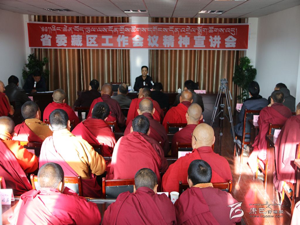 劉成鳴從深刻認識省委對四川藏區(qū)戰(zhàn)略地位和形勢的判斷,深刻認識省委關(guān)于藏區(qū)工作的總體要求、總體目標(biāo)、重要原則、重大舉措以及省委和東明書記對甘孜藏區(qū)的關(guān)心關(guān)懷,深刻認識省委關(guān)于努力引導(dǎo)藏傳佛教與社會主義社會相適應(yīng)的部署要求等七個方面,進行了詳細宣傳講解。