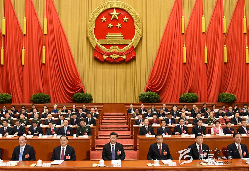 習(xí)近平、李克強(qiáng)、俞正聲、劉云山、王岐山、張高麗和大會(huì)主席團(tuán)成員在主席臺(tái)就座。