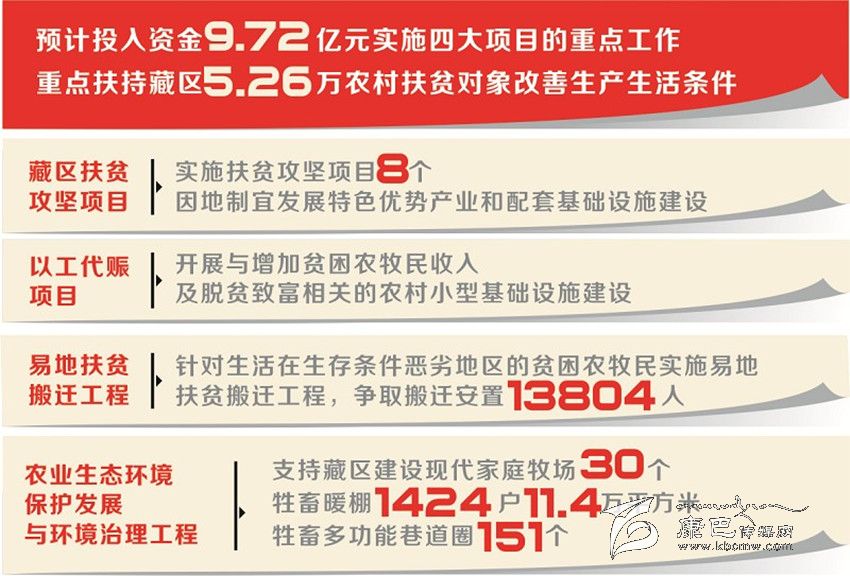 2016年,藏區(qū)扶貧解困行動計劃預計投入資金9.72億元,將繼續(xù)實施藏區(qū)扶貧攻堅項目、以工代賑項目、易地扶貧搬遷工程和農(nóng)業(yè)生態(tài)環(huán)境保護發(fā)展與環(huán)境治理工程四大重點工作,重點扶持藏區(qū)5.26萬農(nóng)村扶貧對象改善生產(chǎn)生活條件。與去年相比,今年的扶貧解困行動計劃有何變化與亮點?記者采訪了省發(fā)展改革委、省扶貧移民局等相關處室的負責人。