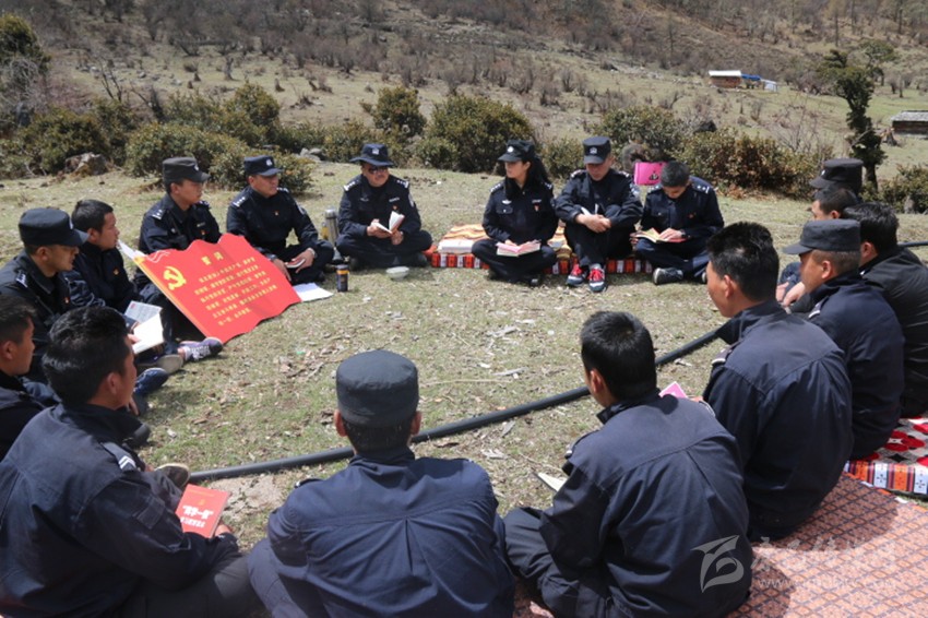 九龍縣公安局黨員在蟲草山上一邊為群眾服務,一邊開展“兩學一做”學習教育。本網(wǎng)資料庫圖