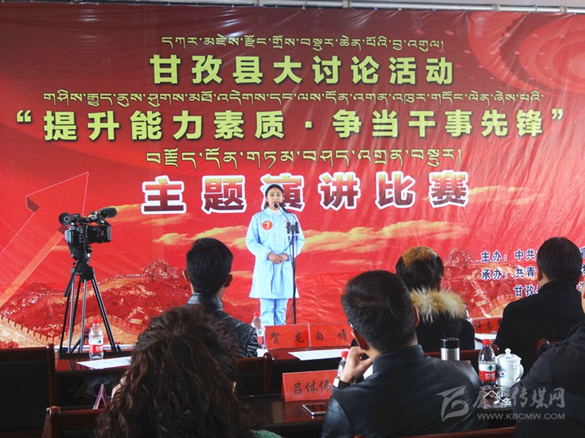 圖為甘孜縣舉辦大討論活動暨“提升能力素質(zhì)·爭當(dāng)干事先鋒”主題演講比賽。(李珍蘭 攝)