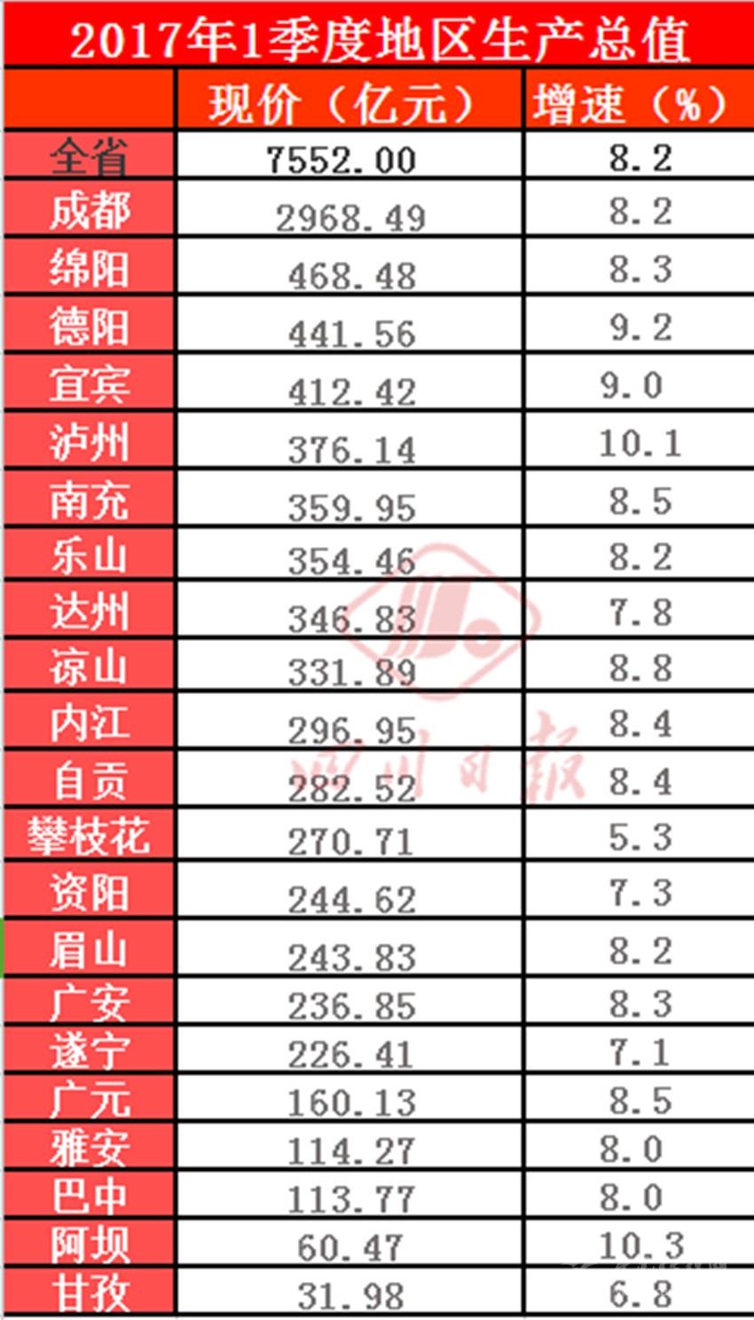 兩項(xiàng)前五中,德陽和瀘州雙雙榜上有名。