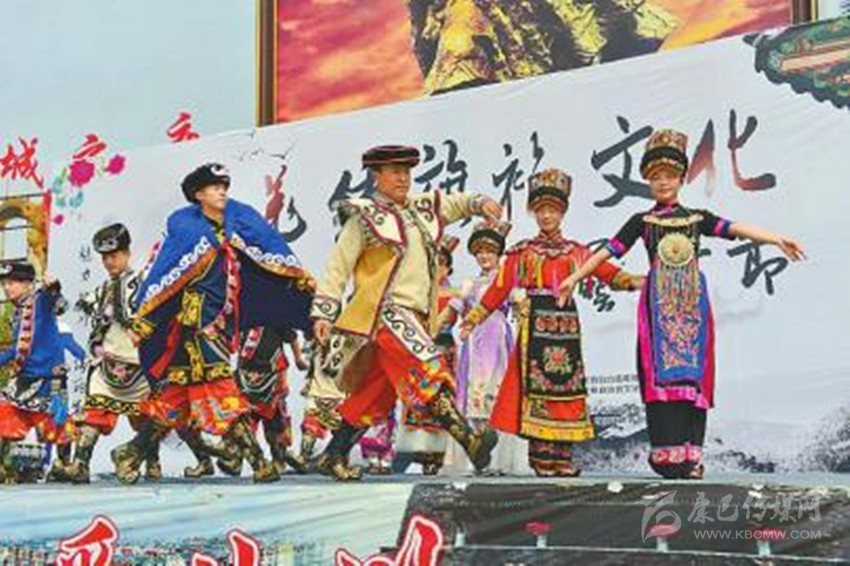 4月29日,綿陽市北川羌族自治縣巴拿恰街文化廣場,當?shù)厝罕娚碇褡宸b走秀,歡度“五一”。 寇元林 攝