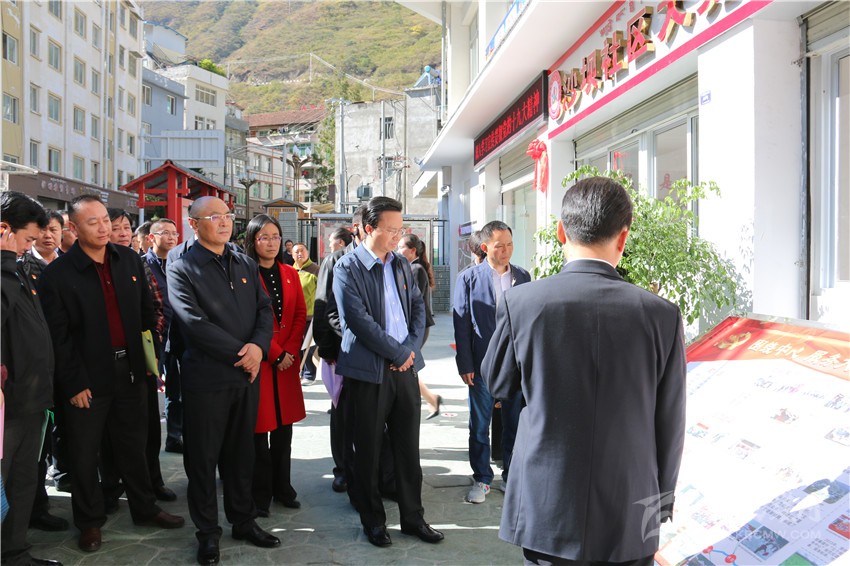 會前,劉吉祥出席了瀘定縣沙壩社區(qū)委員會揭牌儀式,并同與會同志參觀了瀘定縣沙壩社區(qū)“大黨委”建設、電力公司國企黨組織建設、瀘橋鎮(zhèn)便民服務中心建設、縣法院機關黨組織建設。