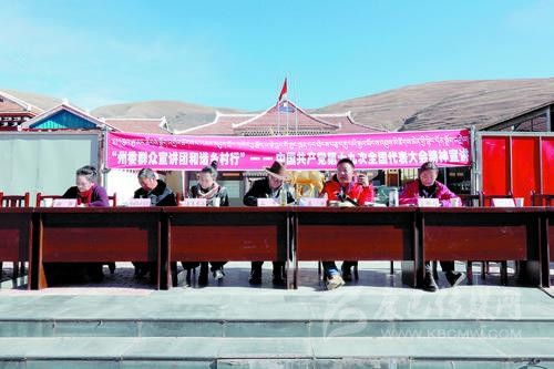 當天,州委群眾宣講團成員分三組分赴尼斯鎮(zhèn)、熱打鄉(xiāng)、水洼鄉(xiāng)和正斗鄉(xiāng)開展十九大精神宣講。宣講員們緊扣“不忘初心、牢記使命”的主題,圍繞群眾最關(guān)心的精準扶貧、醫(yī)療救助、義務教育以及愛國守法、依法治國等方面向群眾進行精彩宣講。接地氣的宣講贏得群眾陣陣掌聲,講到精彩處群眾還為宣講員敬獻哈達。