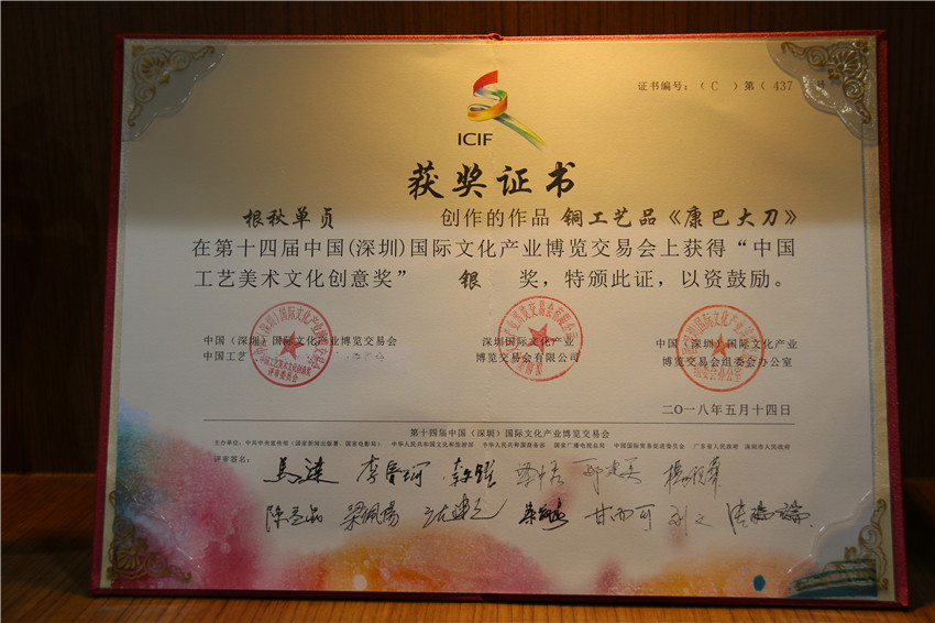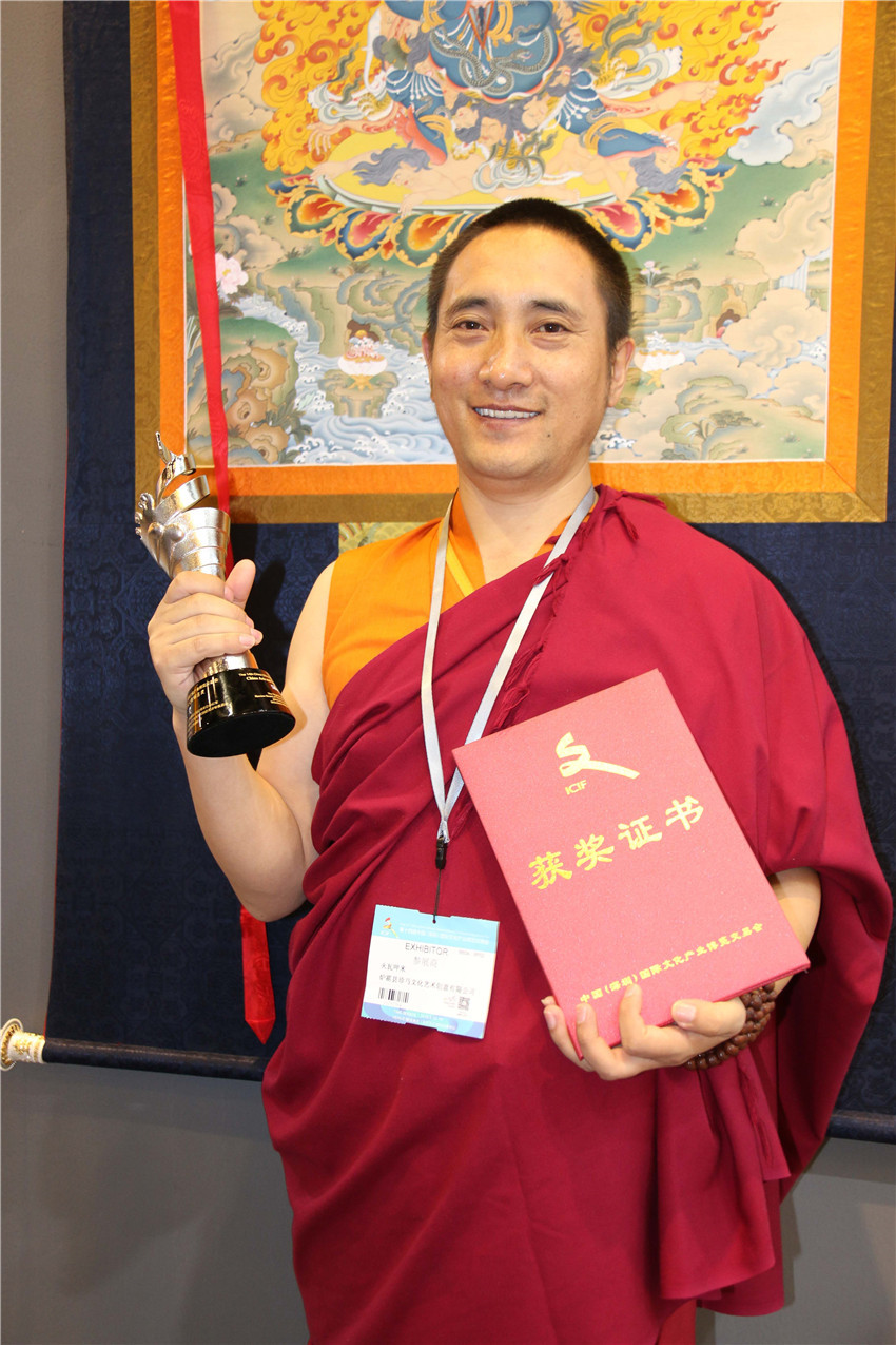 據(jù)了解,在本次深圳文博會上,我州參加十四屆深圳文博會參賽展品中有10件工藝品獲獎。其中,白玉縣董察文化公司參展作品首當其沖獲得工藝美術(shù)文化創(chuàng)意金獎。爐霍縣珍馬文化藝術(shù)公司、爐霍縣華彩文化傳播有限公司、白玉縣河坡藏民族手工藝公司、新龍藥泥面具分別獲得工藝美術(shù)文化創(chuàng)意銀獎;德格縣多普溝噶瑪噶孜文化旅游公司、甘孜州郎卡杰唐卡有限公司、丹巴木版畫、康體書法、德格絳紅天堂文化旅游公司分別獲得工藝美術(shù)文化創(chuàng)意銅獎。同時,州文體廣新局和康巴文化研究院獲優(yōu)秀組織獎;甘孜州全境文化產(chǎn)業(yè)有限發(fā)展公司和康巴聚慧文化傳播有限公司獲得優(yōu)秀展示獎。其它參展商均獲得本屆文博會優(yōu)秀入圍獎。國家一級手工藝美術(shù)大師、爐霍縣華彩文化傳播有限公司馮建華:“這一次是我公司第一次在文博會上參展,就榮獲銀獎,這要感謝黨委政府和文化部門提供的平臺。相信在此基礎(chǔ)上狠下功夫,越做越好,將陶瓷藝術(shù)與唐卡藝術(shù)很好的發(fā)揚光大。”
