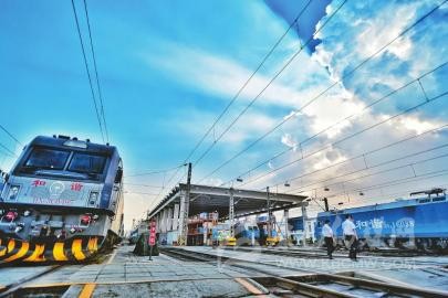 8月6日,中國(guó)鐵路成都局集團(tuán)有限公司成都機(jī)務(wù)段,南向班列(成都)從這里開(kāi)往城廂站,駛往欽州港。