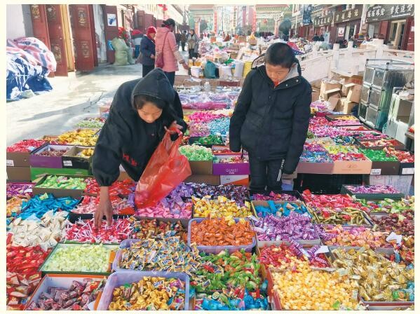 得榮縣是受兩次堰塞湖泄洪影響較為嚴重的地區(qū)。臨近新春,由于交通尚未完全恢復(fù),為方便群眾購置年貨,當?shù)卣氐嘏e辦了“家門口的年貨”展銷活動。在得榮縣曲雅貢鄉(xiāng)三號壩活動中心,擺滿了糖果、酒類、春聯(lián)、燈籠……各種商品琳瑯滿目,一大清早就有大批群眾到這里挑選年貨?!百I點糖果、瓜子、白酒、火鍋底料回去準備過年了,本來做好了簡單過年的準備,真是太好了?!鼻咆曕l(xiāng)的次仁曲措開心地說。