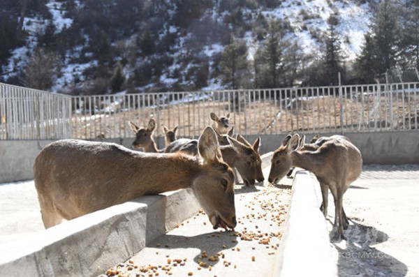 俄巴是四川甘孜藏族自治州爐霍縣洛秋鄉(xiāng)的建檔貧困戶,他現(xiàn)在是洛秋鄉(xiāng)易日村梅花鹿養(yǎng)殖場的飼養(yǎng)員。俄巴把飼料倒進(jìn)石槽之后,梅花鹿便扎頭猛吃起來,滿槽飼料被一掃而空。