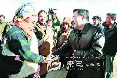 位于我州北部的色達(dá)縣海拔大多在4000米以上,隆冬的色達(dá),冰雪覆蓋大地,原野一片蒼茫。迎著撲面而來(lái)的寒風(fēng),踏著厚厚的積雪,胡昌升先后來(lái)到色達(dá)縣最邊遠(yuǎn)的康勒鄉(xiāng)和克果鄉(xiāng),調(diào)研群眾工作,解決發(fā)展和民生等難題,看望慰問(wèn)基層干部群眾,向大家祝賀新年。