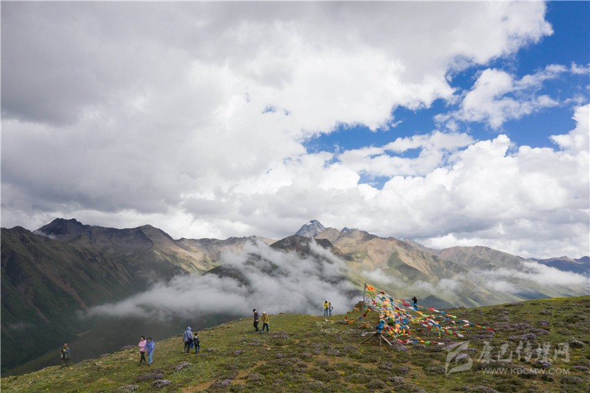 在川藏公路邊的四川康定市呷巴鄉(xiāng)俄達(dá)門(mén)巴村,游客在木雅圣地景區(qū)的草原上欣賞風(fēng)景。新華社記者 江宏景 攝