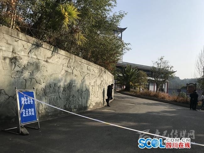 川北民俗文化園是此次廣元市確定的湖北游客定點(diǎn)賓館之一,1月29日,記者在川北民俗文化園看到,酒店門口有清楚的“湖北游客定點(diǎn)賓館”標(biāo)牌,2位戴著口罩的保安負(fù)責(zé)在門口勸返其他游客。院內(nèi)有10多位帶著工作證的工作人員在執(zhí)勤,對(duì)記者也進(jìn)行了詢問。