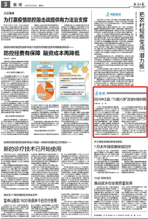 2月8日,經濟日報對四川德陽中江縣在疫情防控中,搞好環(huán)境衛(wèi)生的好做法進行了報道,全文如下: