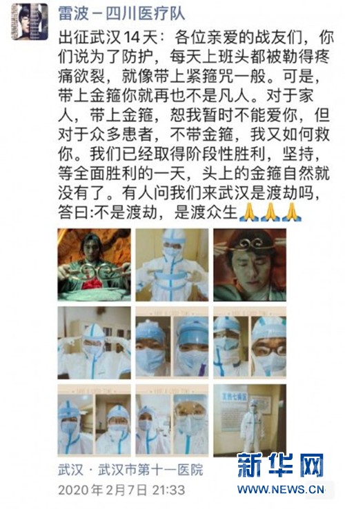 據(jù)雷波介紹,他所在的四川第一批援助湖北醫(yī)療隊(duì)的醫(yī)護(hù)人員都是各大醫(yī)院的中堅(jiān)力量,出生于上世紀(jì)70年代末至80年代中期的比較多。這代人應(yīng)該都看過周星馳的電影,應(yīng)該對(duì)《大話西游》比較熟悉,能產(chǎn)生共鳴。