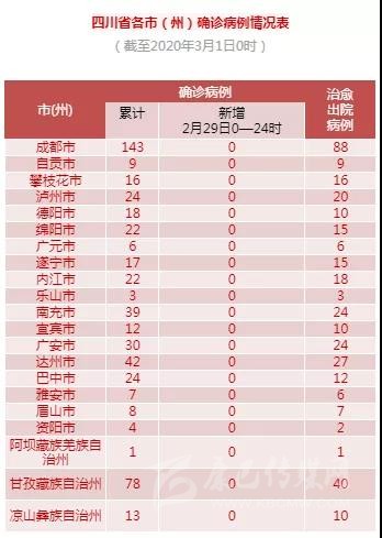 截至2月29日24時(shí),我州累計(jì)報(bào)告確診病例78例,累計(jì)治愈出院40人(道孚縣35人、康定市2人、色達(dá)縣2人、稻城縣1人),其余38人(重癥4例,危重癥1例)均在定點(diǎn)醫(yī)院隔離治療,231名密切接觸者正在接受醫(yī)學(xué)觀察。我州除道孚縣“五鄉(xiāng)一鎮(zhèn)”外,其余17個(gè)縣(市)連續(xù)26天無確診病例報(bào)告。