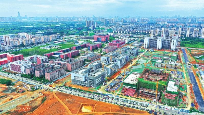 8月3日,鳥瞰成都龍泉驛區(qū)成都大學(xué)校內(nèi)的在建大運村。該項目21個新建單體中,除藝術(shù)中心外,其余20個新建單體主體結(jié)構(gòu)施工已完成,進入裝飾裝修階段。