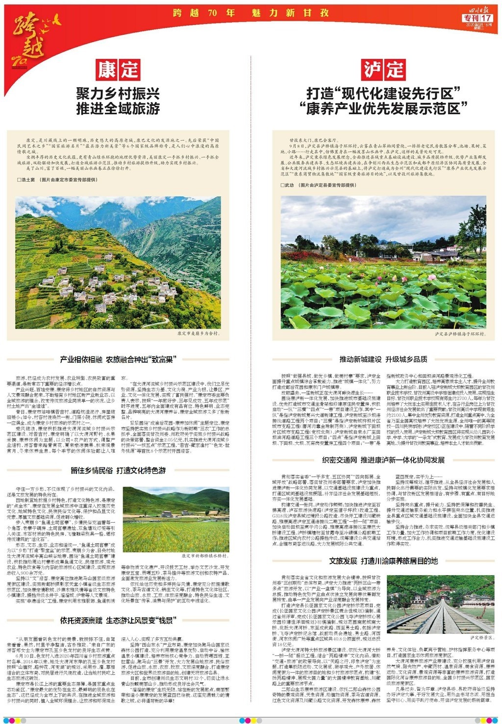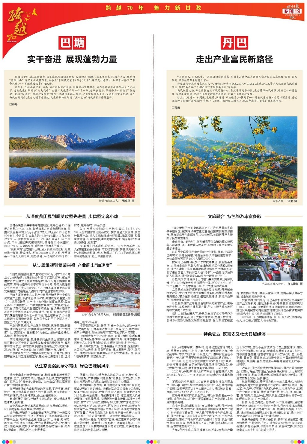 今天,四川省委機關報——四川日報,推出12個整版的特別報道“跨越70年 魅力新甘孜”,圖文并茂,濃墨重彩地展現(xiàn)甘孜州70年砥礪奮進的光輝歲月。
