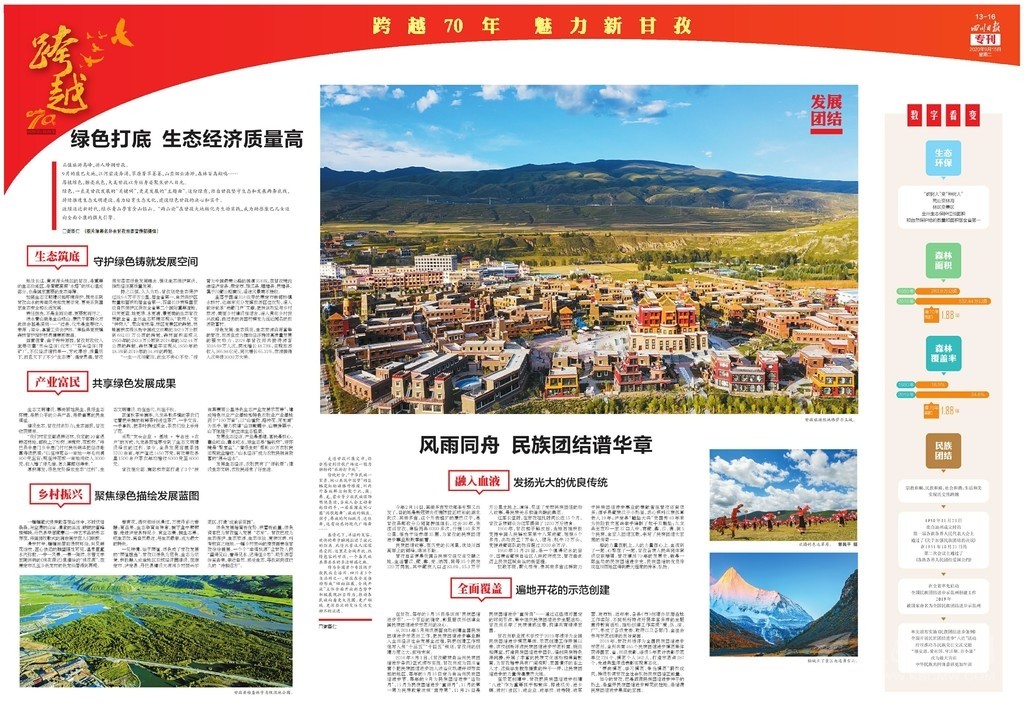 第三連版聚焦“發(fā)展、團結”,關注綠色生態(tài)保護和民族團結,突出甘孜的川西北生態(tài)示范區(qū)定位和藏族自治州特色發(fā)展。