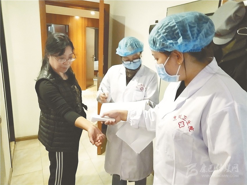 醫(yī)務(wù)人員到演職人員房間測量體溫。