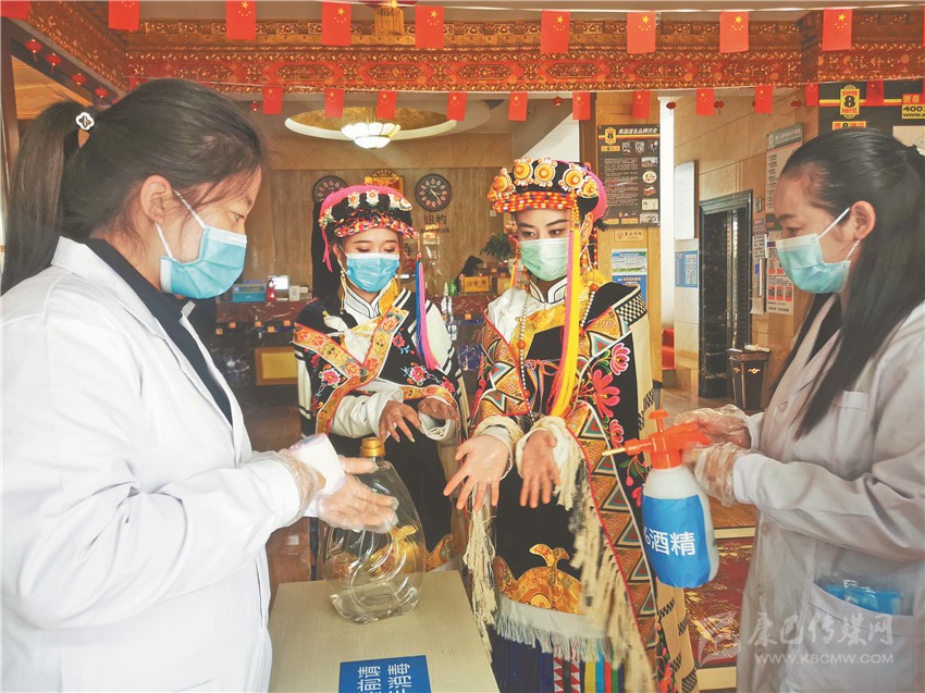 巴塘、九龍、得榮、理塘、甘孜、新龍、德格、白玉等各縣演出隊也十分重視防疫工作。每個演出隊均配齊了酒精、口罩、體溫槍等防疫用品,并在到達(dá)康定前,就對各自演出隊開展了防疫宣傳、知識普及等工作。