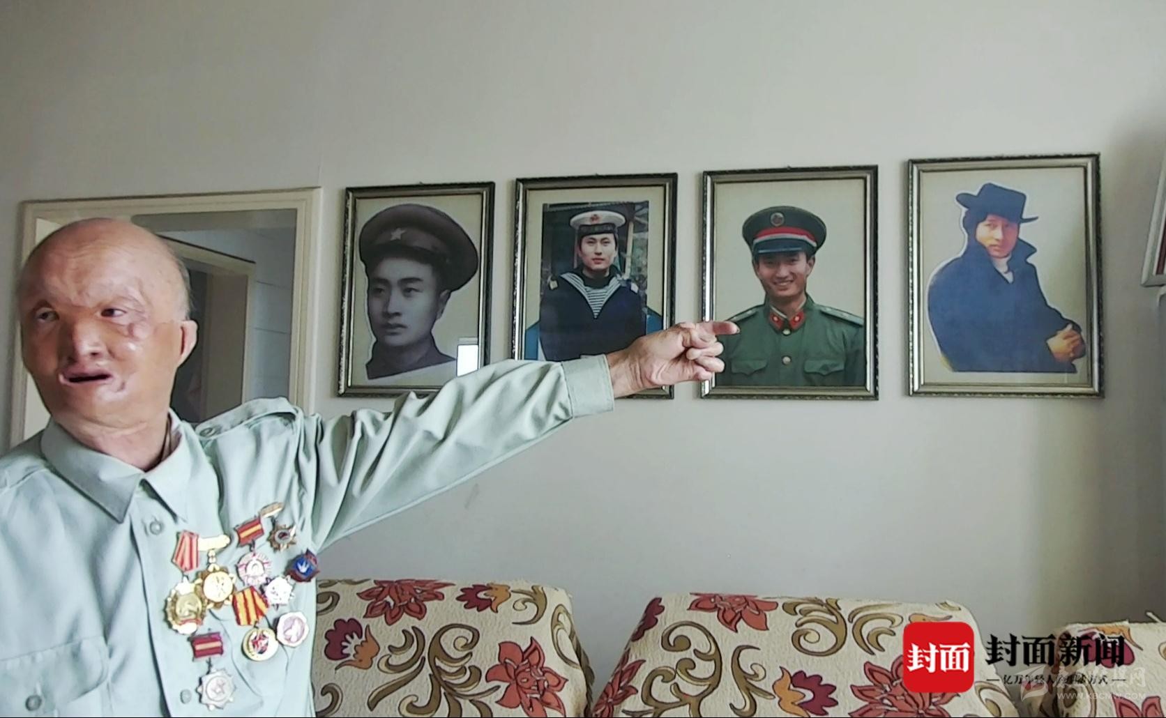 初見這位老人,他的面容讓人印象深刻。69年前那個冬天的朝鮮戰(zhàn)場上,是他一輩子最難忘的經(jīng)歷。年僅20歲的他遭遇敵機投擲的凝固汽油彈,導(dǎo)致面部、手部嚴重?zé)齻?,造成一級傷殘?/p>