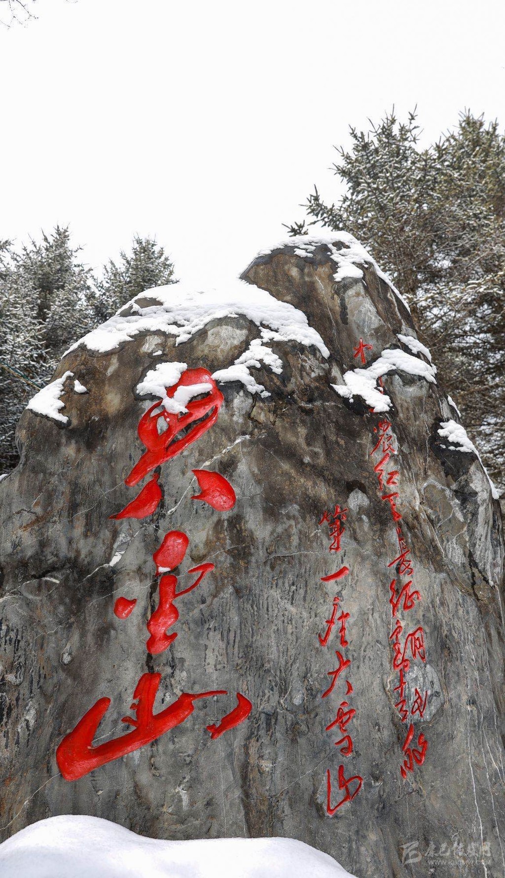 紅軍長征翻越夾金山紀念地被白雪覆蓋的石碑