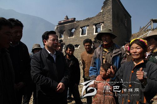 22日早晨8時(shí),胡昌升帶著對(duì)受災(zāi)群眾的惦念、對(duì)災(zāi)情的關(guān)注、對(duì)撲火人員的慰問(wèn),驅(qū)車(chē)前往康定縣沙德鄉(xiāng)火災(zāi)現(xiàn)場(chǎng)慰問(wèn)受災(zāi)群眾、查看火災(zāi)災(zāi)情,指揮撲火工作。此前的21日,上赤村洛讓鄧珠的房屋在此次森林火災(zāi)中被燒毀。一到上赤村,胡昌升便踩著帶著余溫的瓦礫來(lái)到受災(zāi)農(nóng)戶洛讓鄧珠家,為洛讓鄧珠送上慰問(wèn)金及毛毯、被子等物資,看望洛讓鄧珠的家人,詳細(xì)詢問(wèn)家庭基本情況和災(zāi)后安置情況。胡昌升說(shuō),大火無(wú)情人有情,房子沒(méi)了可以再建,東西燒毀了可以再買(mǎi),人沒(méi)事就好,困難是暫時(shí)的,黨委、政府一定會(huì)照顧好你們的生活,和你們一起克服眼前困難,幫助你們盡快建設(shè)更加美麗、更加安全的新家園。他要求縣鄉(xiāng)黨委、政府要幫助洛讓鄧珠切實(shí)解決吃飯、穿衣、帳篷及房屋重建等實(shí)際困難,把黨委政府的溫暖送到他們心上。胡昌升還鼓勵(lì)洛讓鄧珠要振作起來(lái),在黨委政府的幫助下重建家園,不要因受災(zāi)耽誤孩子上學(xué)。希望鄉(xiāng)親們積極伸出援手,幫助洛讓鄧珠家解決生活困難、開(kāi)展家園重建。