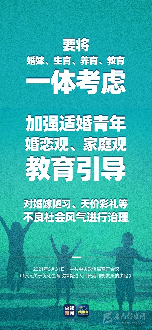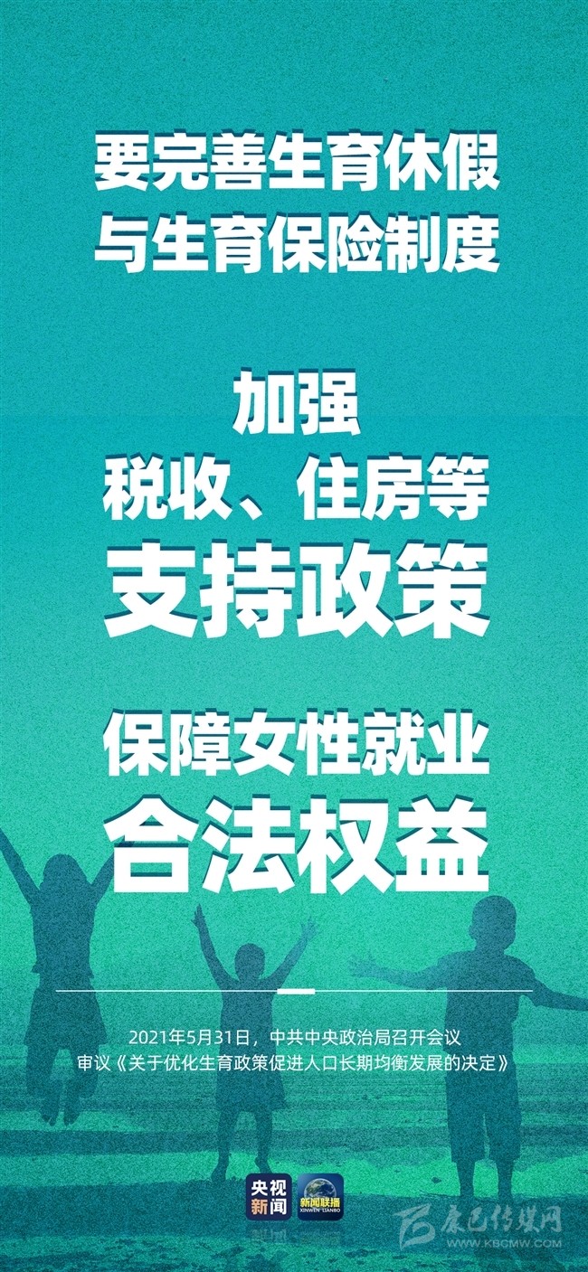 積極應(yīng)對人口老齡化,我國將出臺重大政策舉措。中共中央政治局5月31日召開會議,會議指出,進一步優(yōu)化生育政策,實施一對夫妻可以生育三個子女政策及配套支持措施,有利于改善我國人口結(jié)構(gòu)、落實積極應(yīng)對人口老齡化國家戰(zhàn)略、保持我國人力資源稟賦優(yōu)勢。
