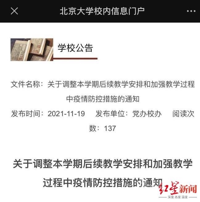 除了就地過年的倡議,紅星新聞記者也發(fā)現(xiàn),不少高校也開始了提前放假。北京部分高校發(fā)布通知,調(diào)整2021至2022學(xué)年秋季學(xué)期期末考試及寒假安排。包括北京大學(xué)、中國人民大學(xué)、北京物資學(xué)院等高校均發(fā)出了提前放寒假安排。