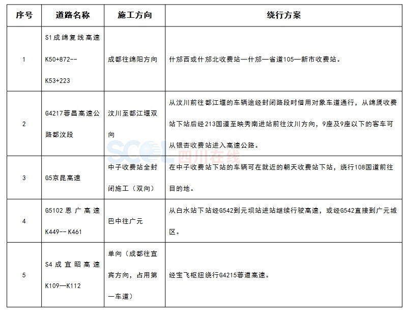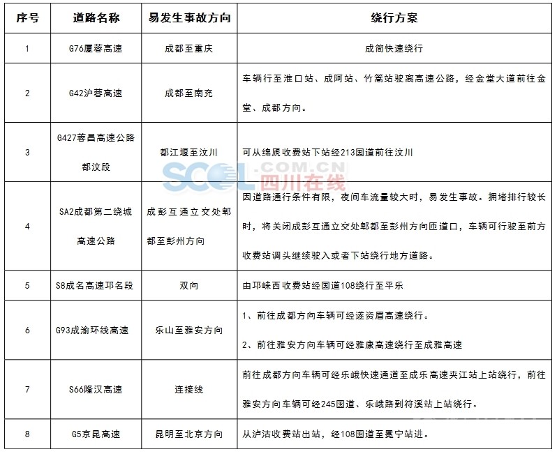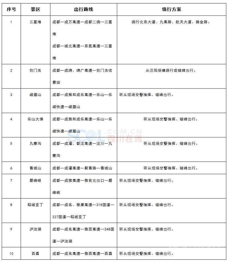 景區(qū)路段及繞行方案