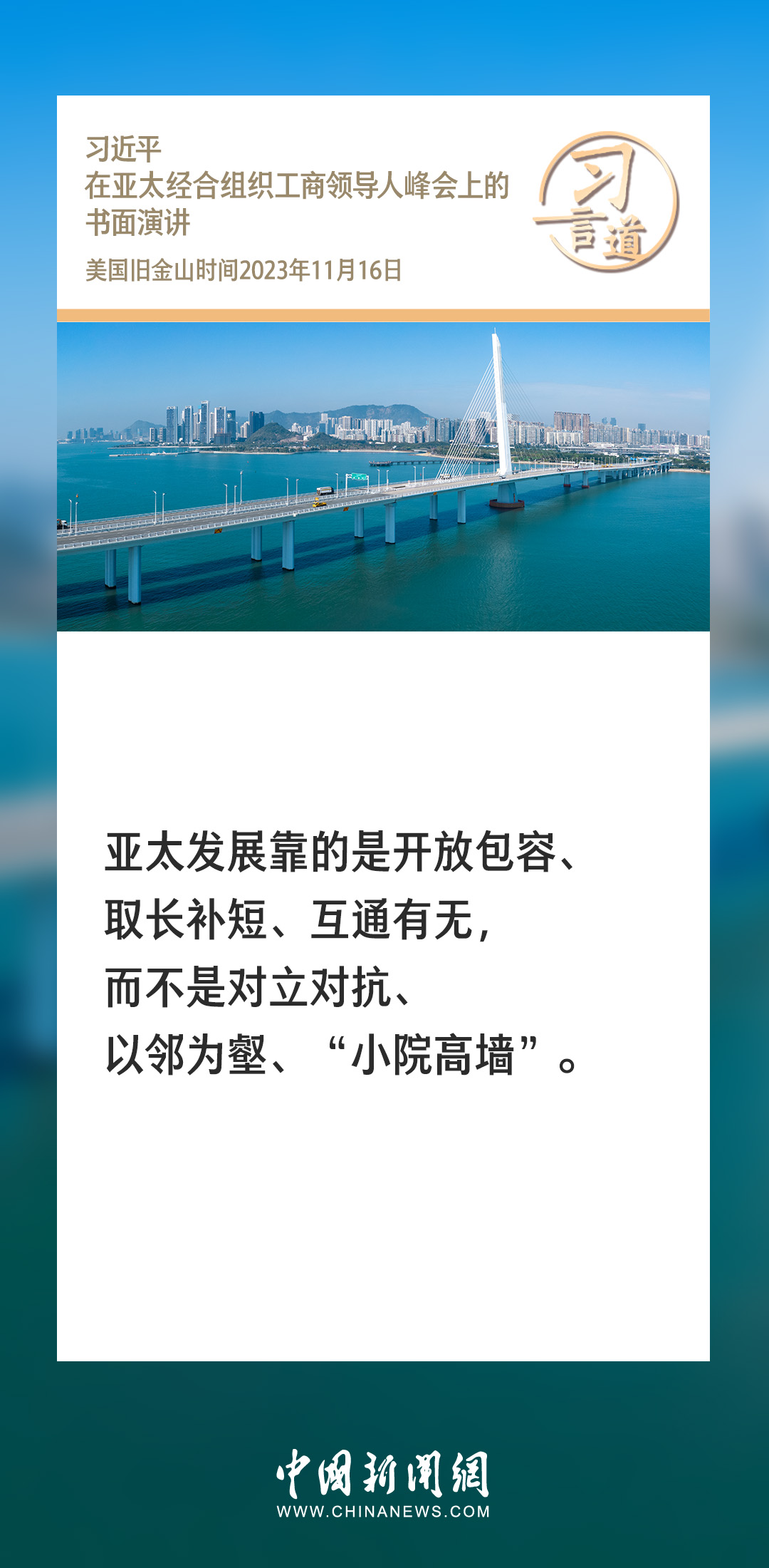 從“我”到“我們”,習近平又講述了舊金山與中國的深厚淵源。這座美麗的城市見證了中美兩國人民百年交往的歷史、見證了中美建設美好世界的努力。