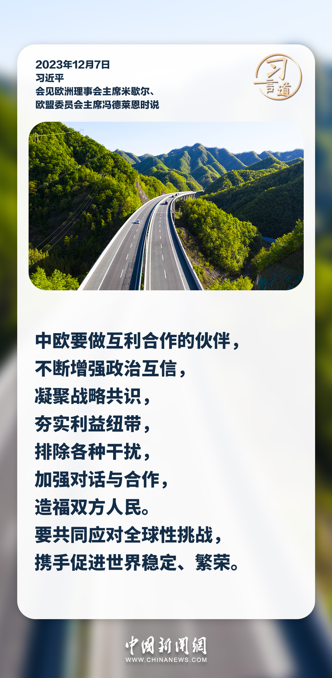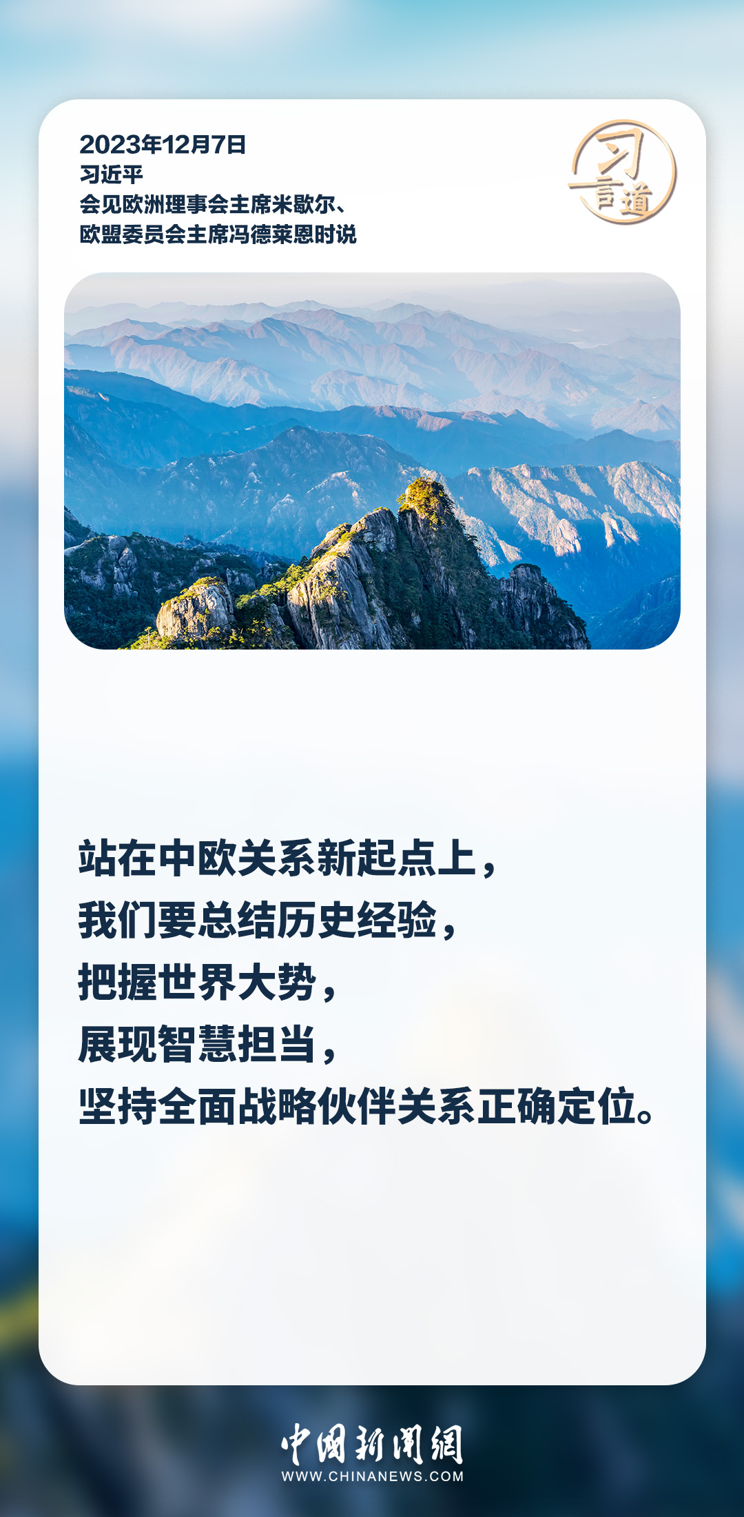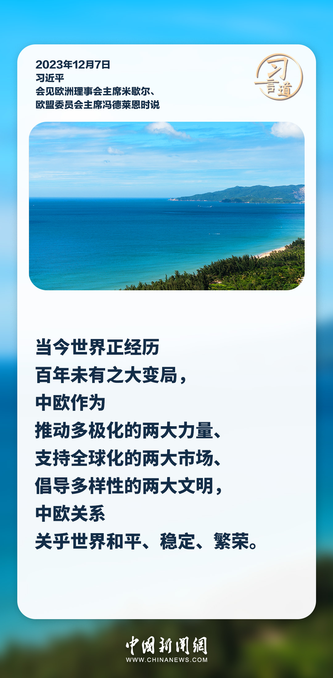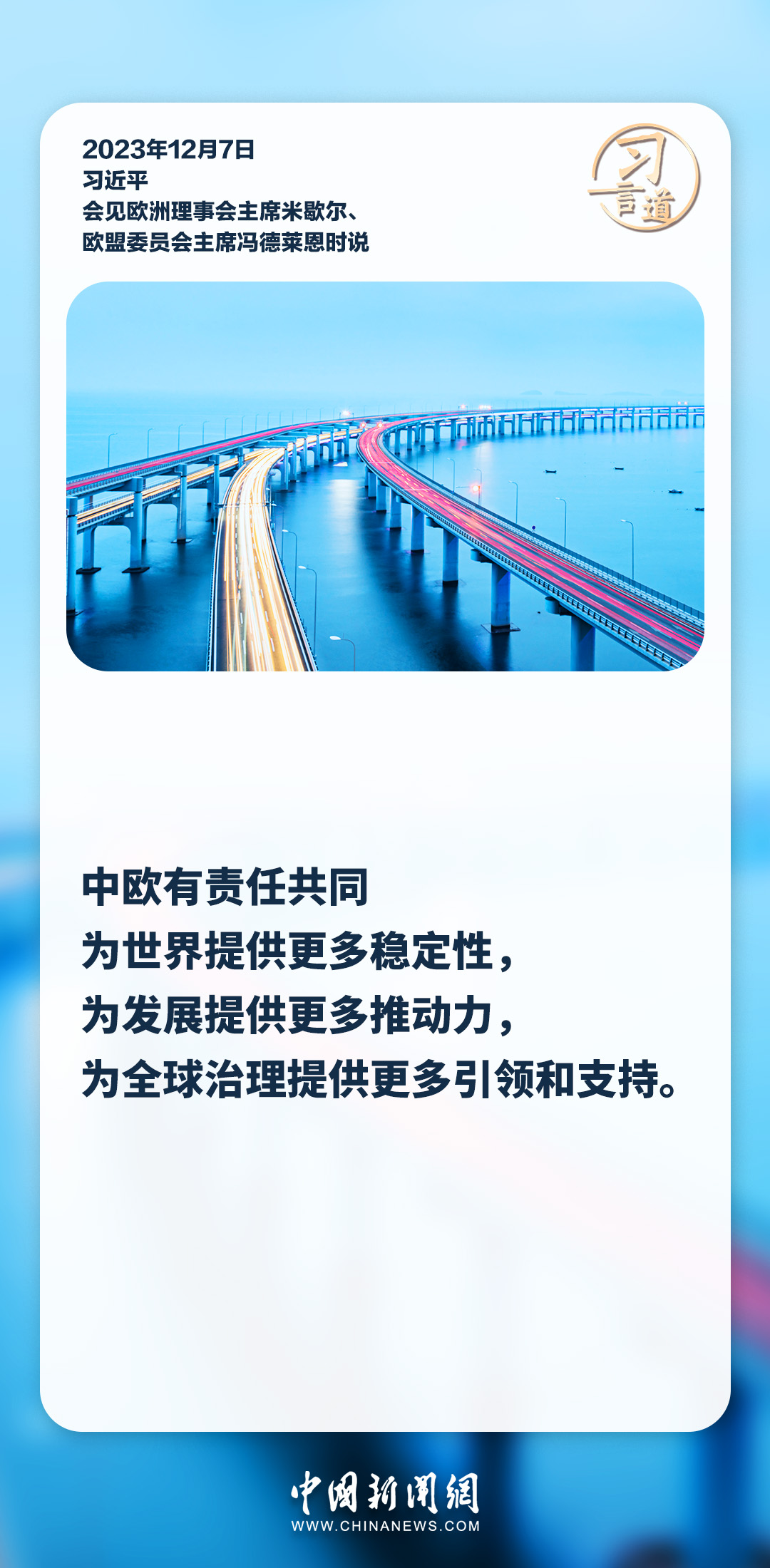 12月7日,國家主席習(xí)近平在釣魚臺國賓館會(huì)見來華舉行第二十四次中國—?dú)W盟領(lǐng)導(dǎo)人會(huì)晤的歐洲理事會(huì)主席米歇爾和歐盟委員會(huì)主席馮德萊恩。習(xí)近平說——