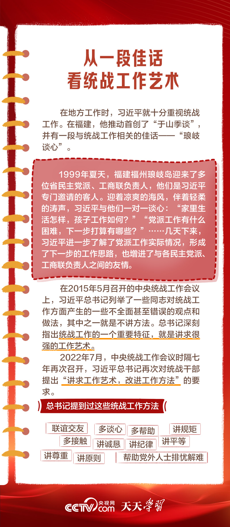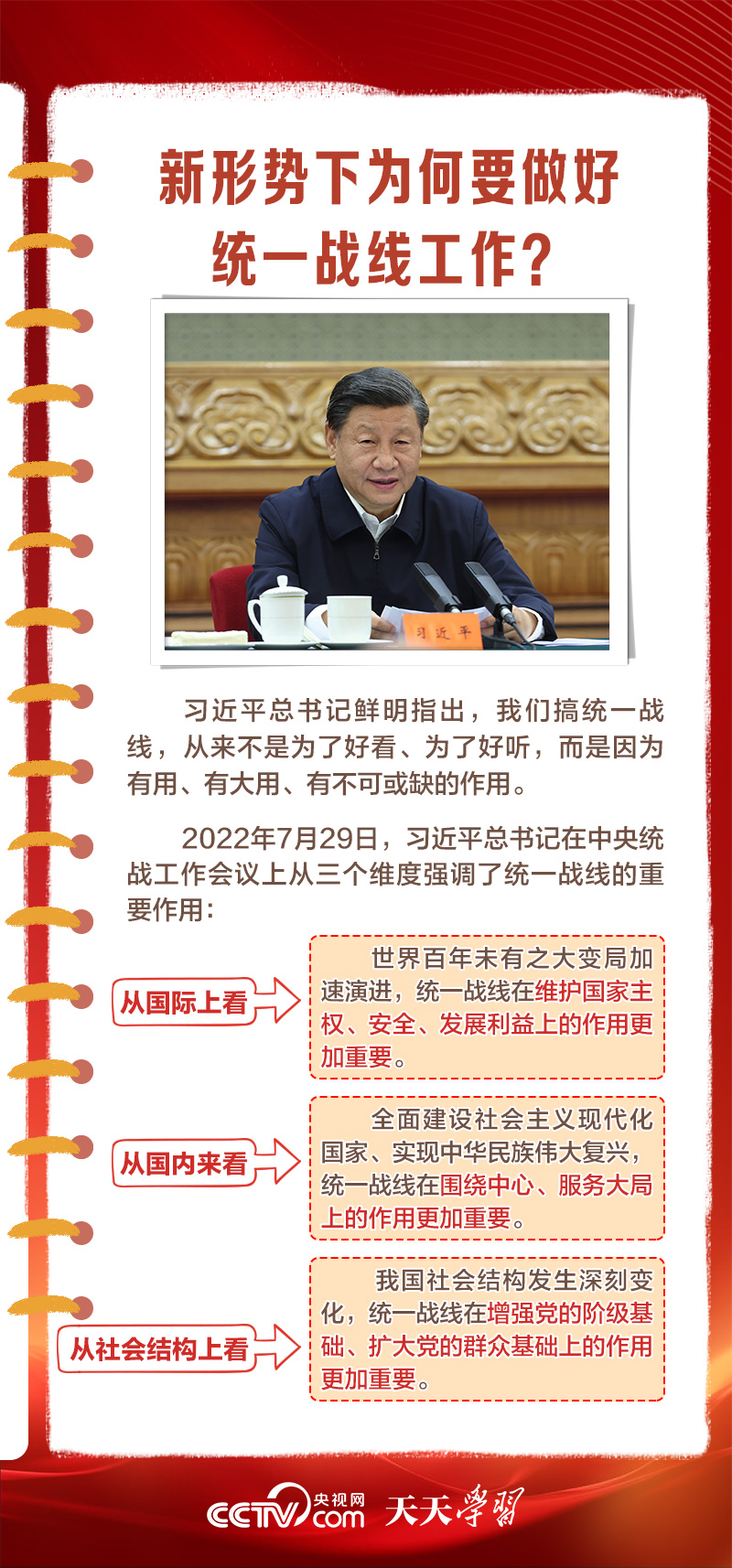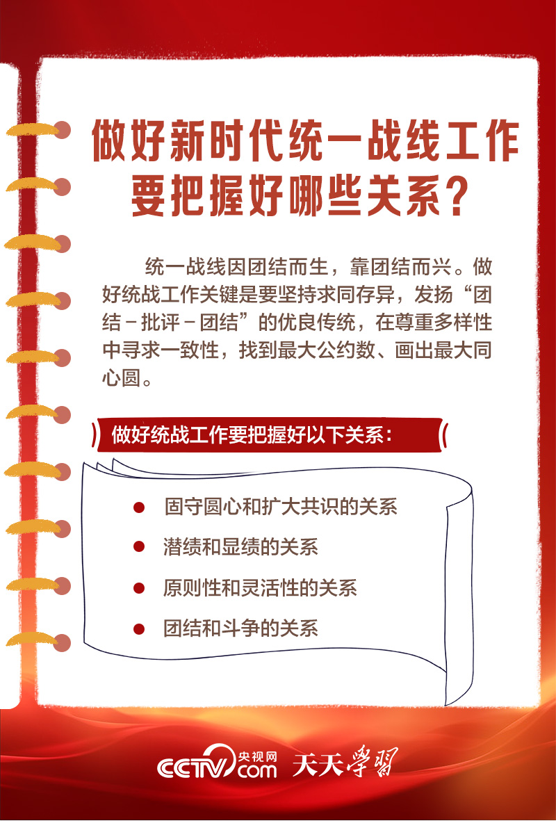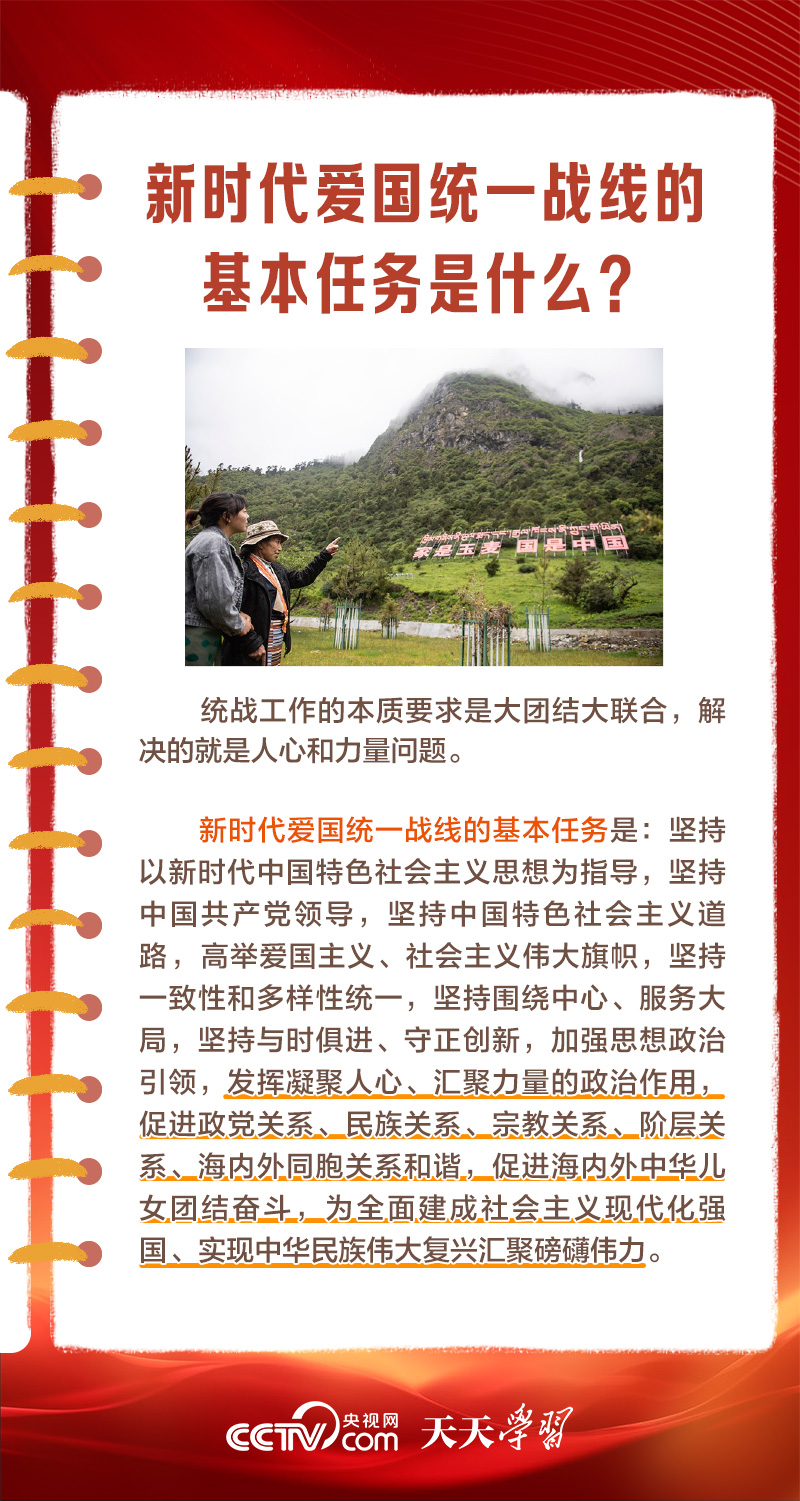 天天學習1月16日出版的第2期《求是》雜志發(fā)表了習近平總書記的重要文章《完整、準確、全面貫徹落實關(guān)于做好新時代黨的統(tǒng)一戰(zhàn)線工作的重要思想》,該文是習近平總書記2022年7月在中央統(tǒng)戰(zhàn)工作會議上講話的一部分。文章指出,統(tǒng)一戰(zhàn)線是黨克敵制勝、執(zhí)政興國的重要法寶,是團結(jié)海內(nèi)外全體中華兒女實現(xiàn)中華民族偉大復興的重要法寶,必須長期堅持。