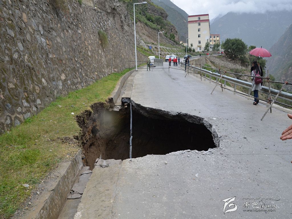 本網(wǎng)訊 (李麗瓊)  今日上午9時(shí)許,國(guó)電一名清潔工在清掃路面時(shí)發(fā)現(xiàn),康定市孔玉鄉(xiāng)阿斗溝和寸達(dá)兩村的通村路面一段發(fā)生地陷并形成深坑。得知情況后,該鄉(xiāng)政府立即組織人員到現(xiàn)場(chǎng)查看險(xiǎn)情。在現(xiàn)場(chǎng),公路水泥路面下方的路基部分下陷形成了直徑約8、9米和不可預(yù)計(jì)高度的深坑。該鄉(xiāng)立即銜接猴子巖國(guó)電公司采取警示標(biāo)牌、隔離帶的設(shè)立工作,同時(shí)與企業(yè)協(xié)商迅速開展排險(xiǎn)工作。目前,當(dāng)?shù)卣呀?jīng)介入處理,并已逐級(jí)上報(bào)相關(guān)部門。