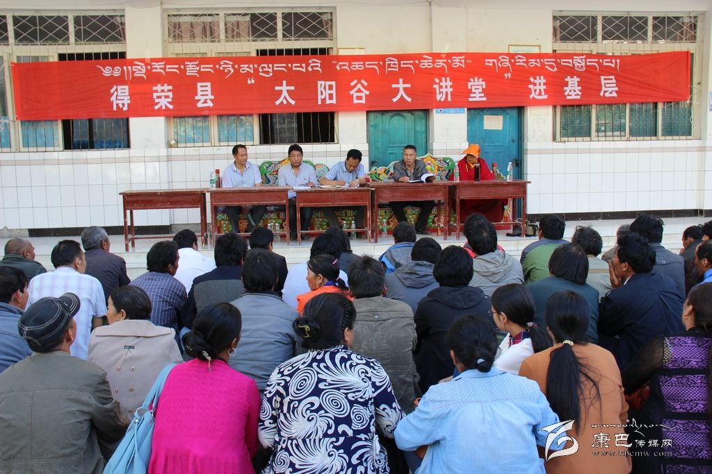 本網(wǎng)訊(尼瑪澤仁)近年來,得榮縣以形勢政策宣傳和意識形態(tài)領(lǐng)域安全教育活動為載體,開設(shè)了獨(dú)有得榮特色的“太陽谷大講堂”。而將大講堂延伸到基層,是當(dāng)前得榮縣為宣傳貫徹省委十屆六次、州委十屆七次和縣委十一屆五次全會精神的一項(xiàng)重要舉措,也是得榮縣藏漢雙語宣講團(tuán)開展“愛國守法感恩團(tuán)結(jié)”群眾宣講的主要載體之一,大講堂的延伸,為得榮縣每年群眾宣講全覆蓋奠定基礎(chǔ)。