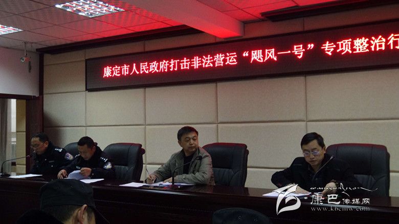 康定市人民政府有關領導在“颶風一號”行動專項整治大會上作動員講話。