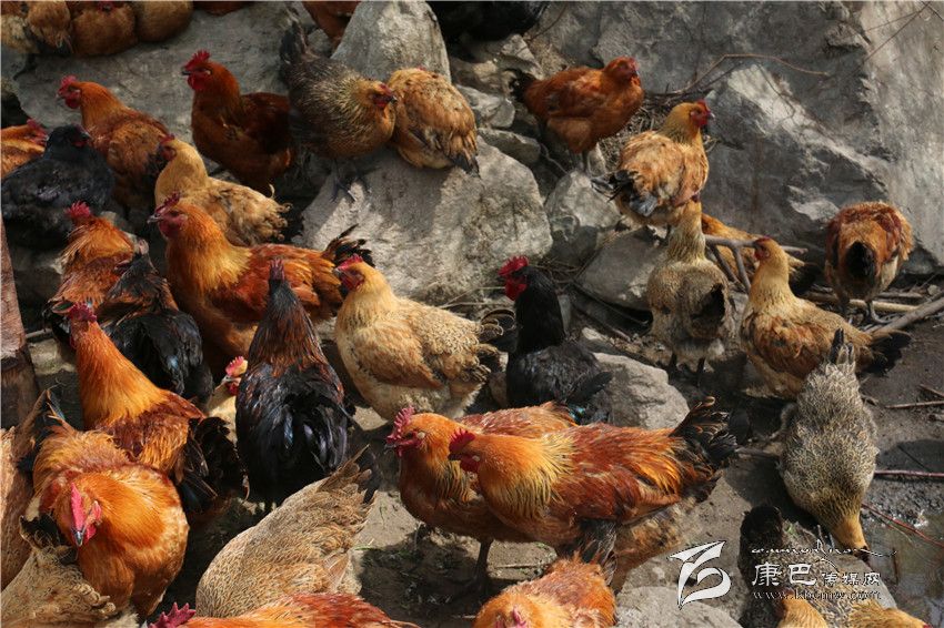 村里成群的跑山雞。