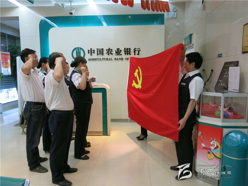 農(nóng)行瀘定縣支行黨員重溫入黨誓詞。