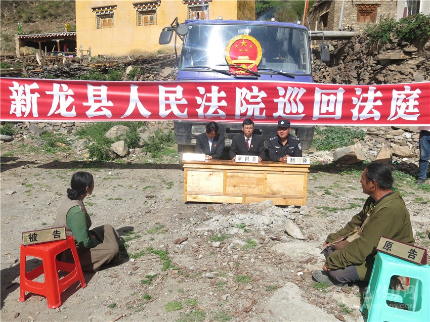 五年來,新龍縣法院堅(jiān)持以全州法院開展的人民法庭“五進(jìn)”活動(dòng)為契機(jī),在每一次活動(dòng)開展中近民、親民,體現(xiàn)人民法院的親和力和公信力。積極開展“送法下鄉(xiāng)”、“以案說法”和法律咨詢活動(dòng),不斷提高農(nóng)牧民群眾學(xué)法、守法、用法、敬法的意識。在宣傳國家基本法律的基礎(chǔ)上,按照 “當(dāng)?shù)厥裁磫栴}突出,就宣傳什么法律”的原則,下鄉(xiāng)入村為老百姓進(jìn)行了47次法制宣傳,參與農(nóng)牧民群眾37000余人次,發(fā)放了3320多份藏漢雙語的法律宣傳小冊子;在全縣范圍形成以鄉(xiāng)鎮(zhèn)為主,輻射村、社區(qū)、牧場的巡回審判模式,建立案件定點(diǎn)收案點(diǎn)18個(gè),矛盾糾紛定點(diǎn)調(diào)處點(diǎn)18個(gè),有效促進(jìn)了社會(huì)矛盾糾紛的多元化有效解決。同時(shí),該院還充分利用微博、媒體、手機(jī)報(bào)和簡報(bào)等多種形式進(jìn)行宣傳。