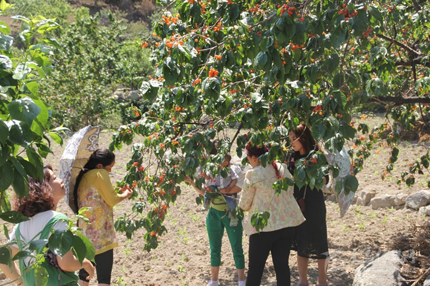 游客采摘櫻桃。