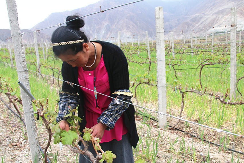 四郎吉村地處半山腰,干旱缺水、土地貧瘠,村民們以前都靠種植青稞來(lái)獲得收入。“過(guò)去,由于缺技術(shù)、葡萄的品質(zhì)不高,我家種的釀酒葡萄賣(mài)不出去;現(xiàn)在,太陽(yáng)魂公司承包了村民們的葡萄園,成立專業(yè)合作社,統(tǒng)一種植、統(tǒng)一管理、統(tǒng)一經(jīng)營(yíng),既規(guī)避了風(fēng)險(xiǎn),又為大家?guī)?lái)了很好的經(jīng)濟(jì)效益?!睂?duì)于村民仁青志瑪來(lái)說(shuō),生活的好轉(zhuǎn)都起因于小小的葡萄。
