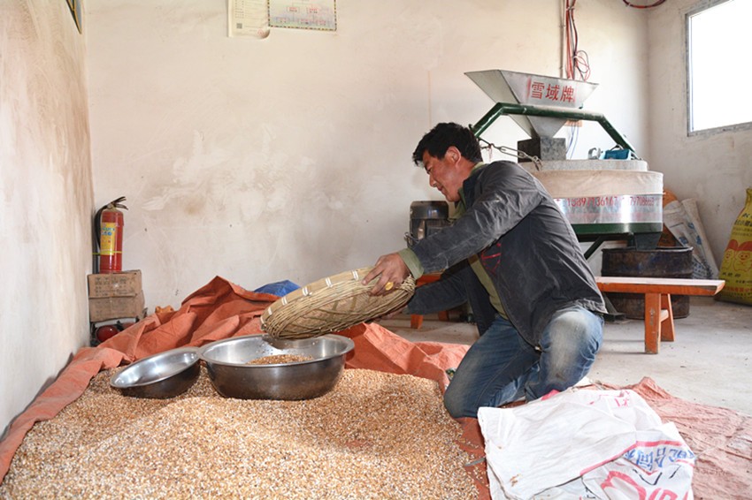 事實上,小作坊的準確名稱是仁果下村電磨坊合作社,屬于村里的集體經(jīng)濟,廠房的建設(shè)、機器的購買都來源于扶貧專項資金。建成后,合作社提供崗位,讓村里的貧困戶來操作運營。于是,洛桑降措成為了這里的“主人”。