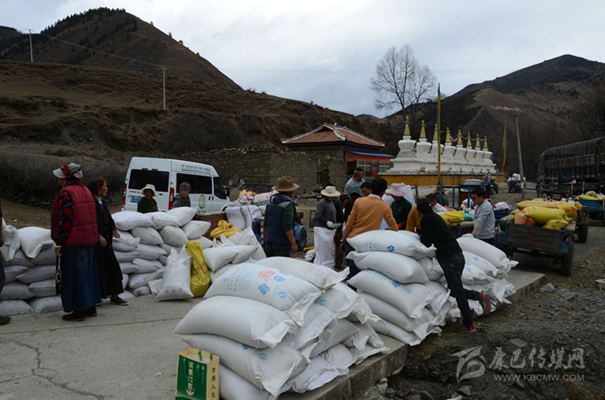 康定市藏家人菌類生產(chǎn)加工農(nóng)民專業(yè)合作社在昌木村(貧困村)收購黑青稞。