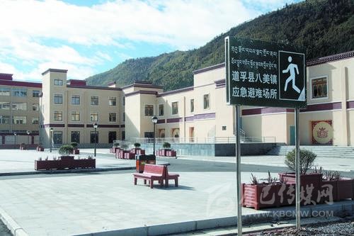 “這邊是避難廣場,設(shè)置有救災(zāi)物資儲備倉庫等;廣場邊還有露天水儲備設(shè)備和供水設(shè)施,一旦遇到緊急情況,這些設(shè)施可以馬上啟用。避難廣場外是新建成的濱河路,這一帶曾經(jīng)是爛泥灘?!币驗闉?zāi)后重建,陳慶在道孚八美鎮(zhèn)一住就是3年,在介紹起八美鎮(zhèn)的災(zāi)后重建成果時,他顯得有些自豪。