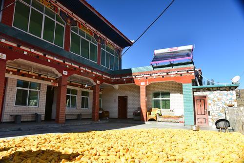 初夏的清晨,有隔夜晶瑩的露珠在花瓣上閃閃發(fā)光,迎接著朝陽?!皝韥韥?,酥油茶都倒好了,大家先到樓上喝茶,今天中午美酒佳肴管吃管飽哦!”36歲牧民來讓登真熱情的招呼著客人們?!袄?,先不織了,趕緊,去把那兩箱好酒找出來!”“對了,快打電話,把你哥也喊過來陪下客人些(客人們)!”……這“管吃管飽”的“好酒”和熱情的服務(wù)接待,正悄無聲息的向大家展示著改革開放40年來農(nóng)牧區(qū)的巨大變化。