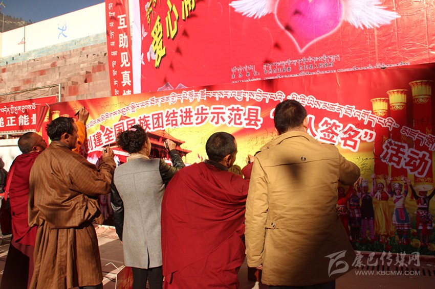 其實,在白玉,像澤稱降措這樣感人肺腑的故事絕非個案。采訪中,筆者細(xì)細(xì)梳理五年來白玉的創(chuàng)建舉措與成績,完全可以用“務(wù)實”“扎實”這四個字來形容。自2014年創(chuàng)建活動啟動以來,縣委、縣政府嚴(yán)格按照“三年創(chuàng)建、四年提升”要求,緊扣“八進活動、共建對子”兩個關(guān)鍵,聚焦“民族團結(jié)促發(fā)展、民族團結(jié)促穩(wěn)定、民族團結(jié)促民生”三大目標(biāo),采取“精準(zhǔn)安排、精準(zhǔn)施策、精心打造、精細(xì)管理”四項舉措,并通過層層簽訂目標(biāo)責(zé)任書和層層落實創(chuàng)建標(biāo)準(zhǔn)、測評指標(biāo),進而形成了“黨委統(tǒng)一領(lǐng)導(dǎo)、黨政齊抓共管、部門各司其職、社會廣泛參與”的創(chuàng)建工作格局;采取“年度定方案、季度有督查、月月抓推進、層層重落實”的方式,通過召開專題會、動員會、現(xiàn)場會、督導(dǎo)會、匯報會等形式,抓問題、添措施、促整改、補短板、求提升,一系列動真碰硬的推進,使得創(chuàng)建工作由“虛”變“實”;按照“精準(zhǔn)宣講、掛圖作戰(zhàn)、對單宣講、對村消號、定學(xué)式”的宣講思路,采取“縣到鄉(xiāng)、鄉(xiāng)進村、村入戶、寺廟與僧尼”四個面對面等方式,并結(jié)合常態(tài)化開展的“四下鄉(xiāng)”活動,廣泛學(xué)習(xí)宣傳黨的民族理論、宗教政策、法律法規(guī)以及各項惠農(nóng)惠民政策。五年來,全縣累計出動宣講服務(wù)人員1180人次,開展宣講宣教、“四下鄉(xiāng)”活動以及民族團結(jié)“八進”活動多達(dá)988場次,覆蓋基層干部、農(nóng)牧民群眾和及寺廟近8萬人次,發(fā)放各類宣傳資料2.3萬余份、圖書光盤4500余本(張),贈送各種書籍4130余冊,放映電影152場次;在主要街道、繁華路段、出租車頂屏、燈箱燈桿以及干線公路沿線堡坎,設(shè)置LED屏、宣傳牌、滾動標(biāo)語和墻體標(biāo)語,推送各類創(chuàng)建信息上萬余條,在各機關(guān)、單位、醫(yī)院、學(xué)校、寺廟、鄉(xiāng)鎮(zhèn)、村組(社區(qū))設(shè)置民族團結(jié)標(biāo)語、宣傳櫥窗、展板和文化墻,推出各類宣傳欄2145個、宣傳展板 435個;在縣級宣傳平臺開設(shè)專欄,完成各類主題宣傳300余場次;舉辦創(chuàng)建“萬人簽名”、鍋莊節(jié)、演講比賽、籃球友誼賽、知識競賽、文藝演出等各類民族團結(jié)主題活動近20場,實現(xiàn)了創(chuàng)建宣講宣傳宣教全方位、多層面、立體式和廣覆蓋;切實將民族團結(jié)工作與脫貧攻堅、基層黨建、群眾工作、鄉(xiāng)村治理、依法治縣等有機結(jié)合,大力開展干群結(jié)對認(rèn)親、干部聯(lián)寺聯(lián)僧、支部共建共創(chuàng)以及警民共建等活動;切實在廣大農(nóng)牧民群眾、幫扶援建隊伍、宗教寺院、學(xué)校師生、企業(yè)以及部隊中發(fā)現(xiàn)典型、宣傳典型,進而在全縣上下形成了“學(xué)先進、趕先進、當(dāng)標(biāo)兵”的濃厚氛圍;采取政策傾斜、整合項目、配套資金等措施,狠抓示范點規(guī)范化建設(shè)。目前,全縣所有鄉(xiāng)(鎮(zhèn))、縣級黨政機關(guān)、武警部隊,45%以上的村(社區(qū))、企事業(yè)單位和寺廟已成為民族團結(jié)進步示范地區(qū)或示范單位;……精準(zhǔn)發(fā)力、持續(xù)給力的創(chuàng)建活動,有效形成了創(chuàng)建活動“人人參與、人人推動、人人負(fù)責(zé)、人人共享”的喜人局面。