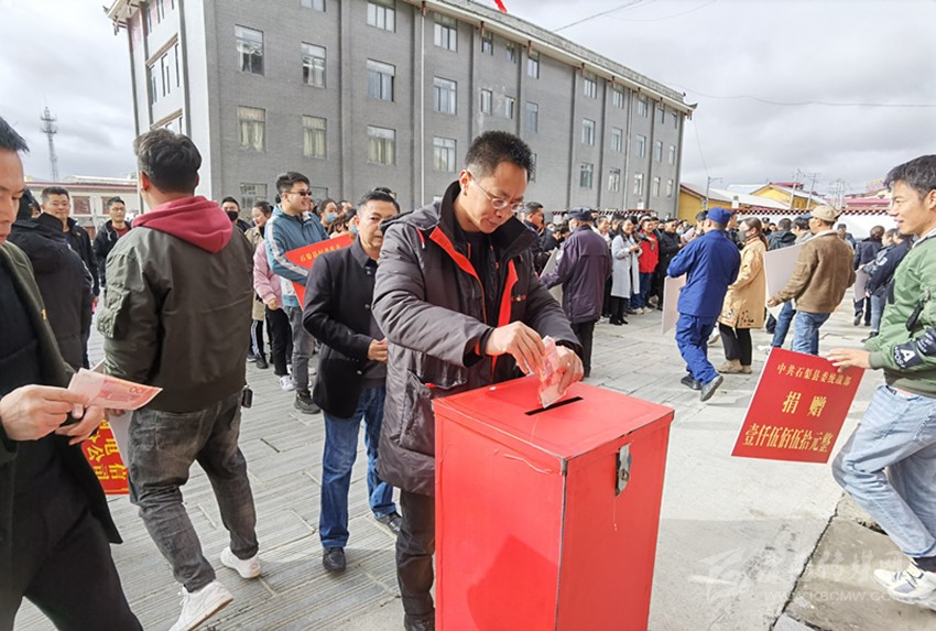 本網(wǎng)訊 10月17日,在由石渠縣委、縣政府主辦,縣脫貧攻堅(jiān)辦、縣紅十字協(xié)會等單位聯(lián)合承辦的2020年“決勝收官戰(zhàn)·共筑小康路”扶貧日系列活動(dòng)上,社會各界愛心人士排成長隊(duì),依次將承載滿滿愛心的善款鄭重放入募捐箱內(nèi)。